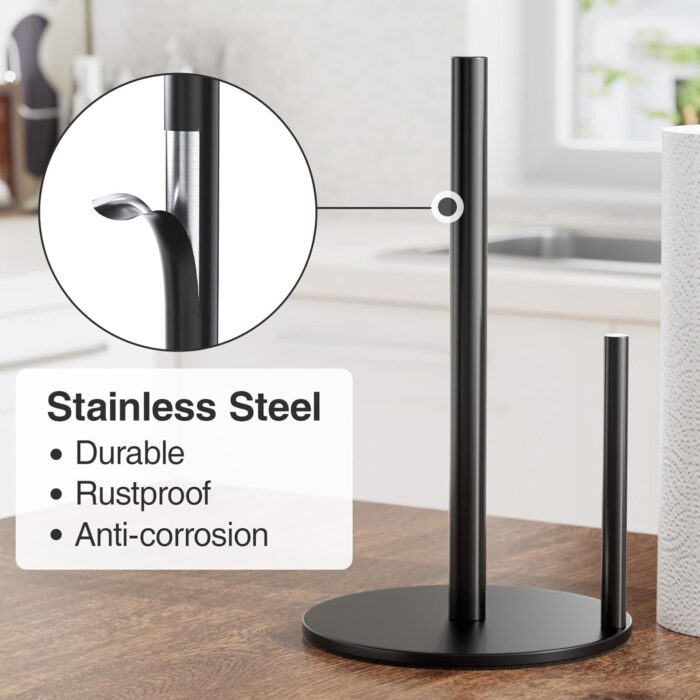 Paper Towel Holder Black Kitchen Roll Holder, Premium Stainless Steel Paper Towel Holder for Kitchen Roll Organize, Countertop Roll Dispenser with Weighted Base