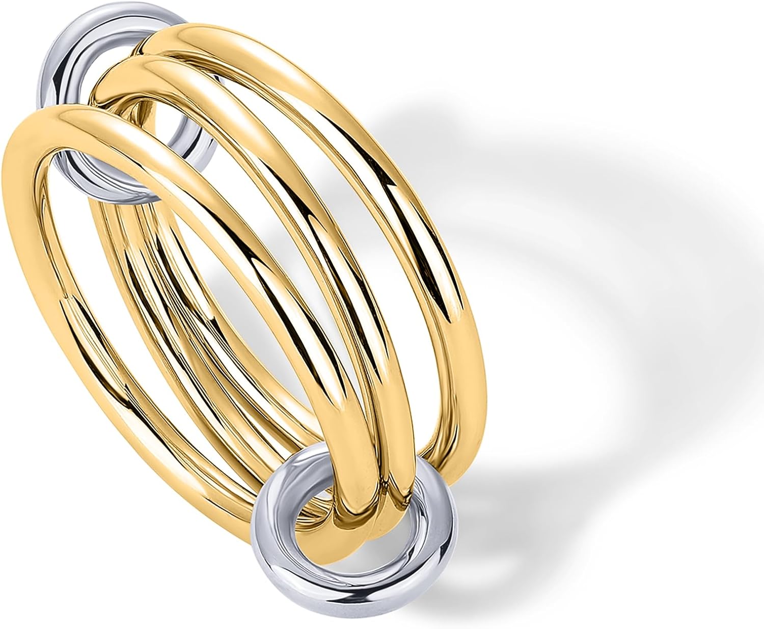PAVOI 14K Gold Plated Interlocked Stackable Rings for Women – Statement Mixed Metals Multi Ring Stack – Two-Toned Stacking Bands
