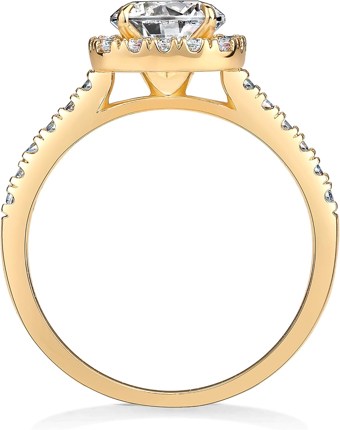 PAVOI 14K Gold Plated Square Halo Engagement Rings | Premium Cubic Zirconia Promise Eternity Ring for Women | Wedding Bands