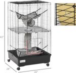 PawHut 42″ Ferret Cage, Small Animal Habitat Metal Pet Cage with Wheels Brakes, Hammocks, Hanging Tunnels, and 3 Doors, Black