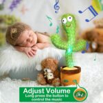 [Update Adjustable Volume] This dancing singing cactus baby toy has a volume adjustment function, which can achieve 5 levels of volume adjustment. When playing or sleeping, you can adjust the volume as needed. How to operate: Press and hold the right button on the toy for 5 seconds to increase or decrease the volume.