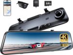 Pelsee P12 Plus 4K Rear View Mirror Camera with ADAS and BSD, 5.8GHz WiFi Mirror Dash Cam Front and Rear, Backup Camera for Car, GPS, 64GB Card Included, WDR Night Vision, Voice Control, 12″ Display