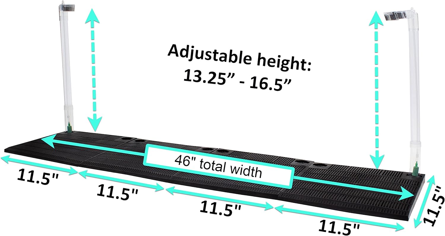 MEASUREMENTS: Each Filter Plate Separately = 11.25” (W) x 11.25” (D) / Filter Plates Together = 45” (W) x 11.25” (D) / Each Lift Tube at Filter Plate Base = 13.25” – 16.5”