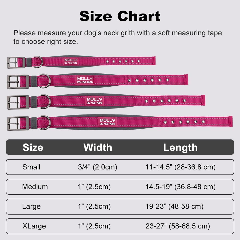 Personalized Dog Collar with Name and Phone Number | Durable Metal Buckle | Ultra Wide Soft Neoprene Padded | Adjustable Reflective Weatherproof Dog Collar for Large Medium and Small Dogs