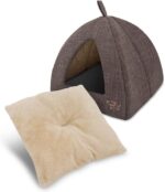 Pet Tent-Soft Bed for Dog and Cat by Best Pet Supplies – Brown Linen, 19″ x 19″ x H:19″