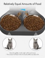 Adjustable Portions: Use the patent meal splitter to adjust the serving size to suit the needs of different pets. To divide food evenly, move the splitter to the right until it can’t move. To divide food unevenly, move the splitter to the left, more food will be dispensed to the right bowl, perfect for multiple pet households.