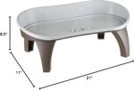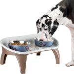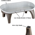 PRODUCT DETAILS – Materials: Plastic. Dimensions: (L) 21″ x (W) 11″ x (H) 8.5″. Holds Two 8.5-inch Dog Bowls (Not Included). Color: Gray and Brown.