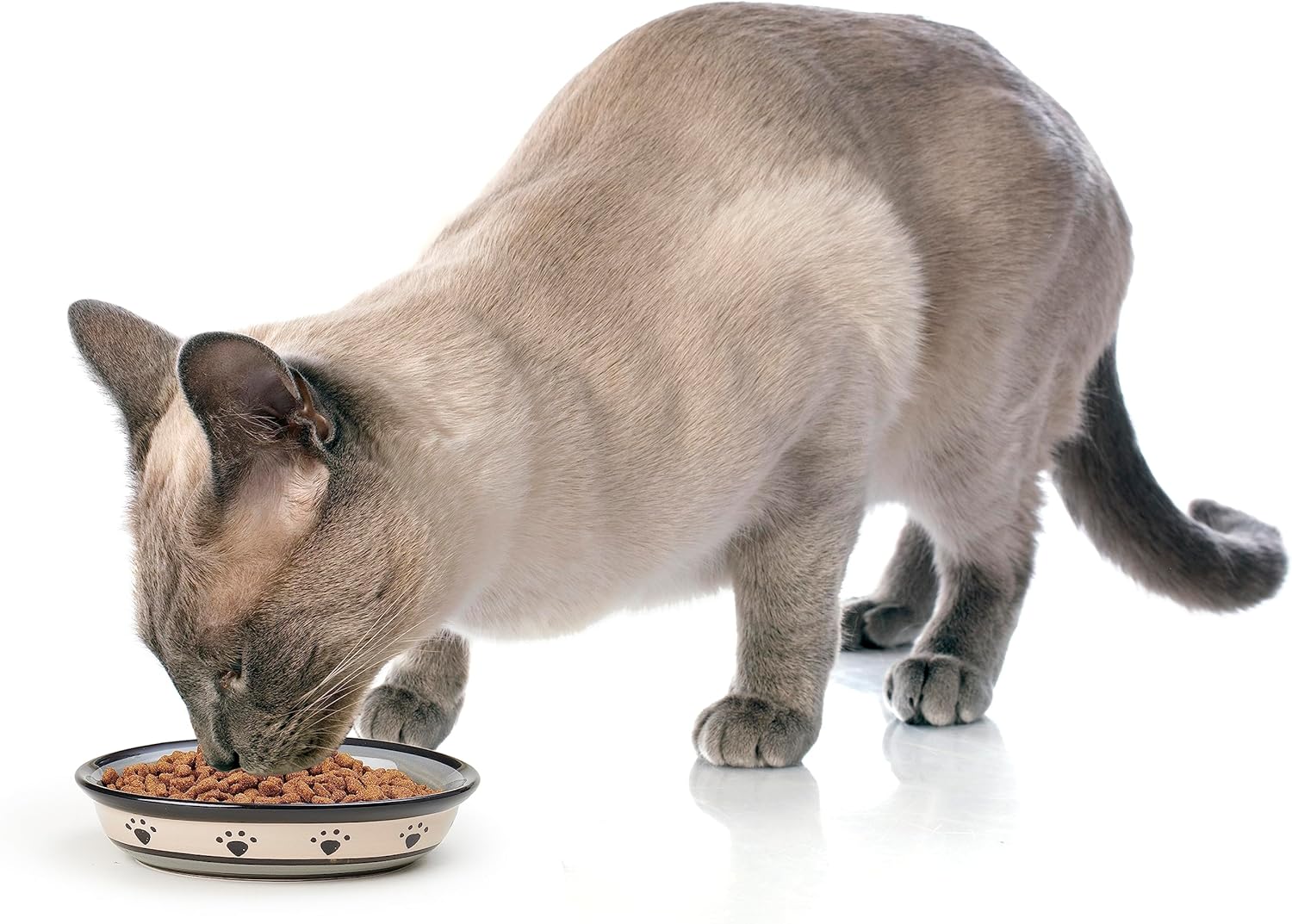 PetRageous 44247 Oval Metro Paws Stoneware Cat Bowl 6.25-Inch Wide and 1.5-Inch Tall Saucer with 1-Cup Capacity and Dishwasher and Microwave Safe for Small Dogs and Cats, Multicolored,Black
