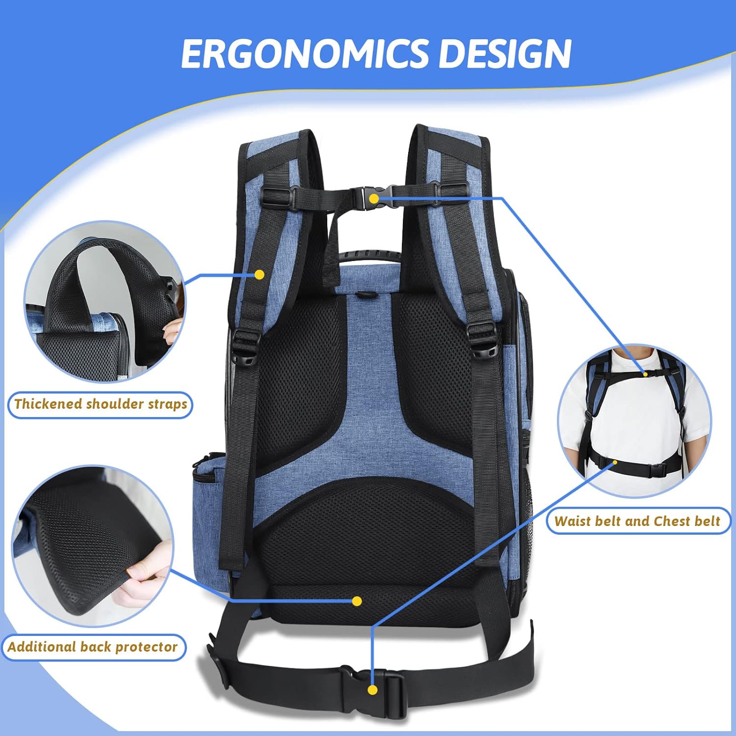【Ergonomics Design】Petskd backpack is equipped with shoulder straps and chest straps to make you more stable when carrying pets. The shoulder straps are equipped with extra thick padding for more comfort and reducing pressure on the shoulders. The back of the backpack is extra thickened to prevent the bottom pad from hitting your back when you are carrying your pet.
