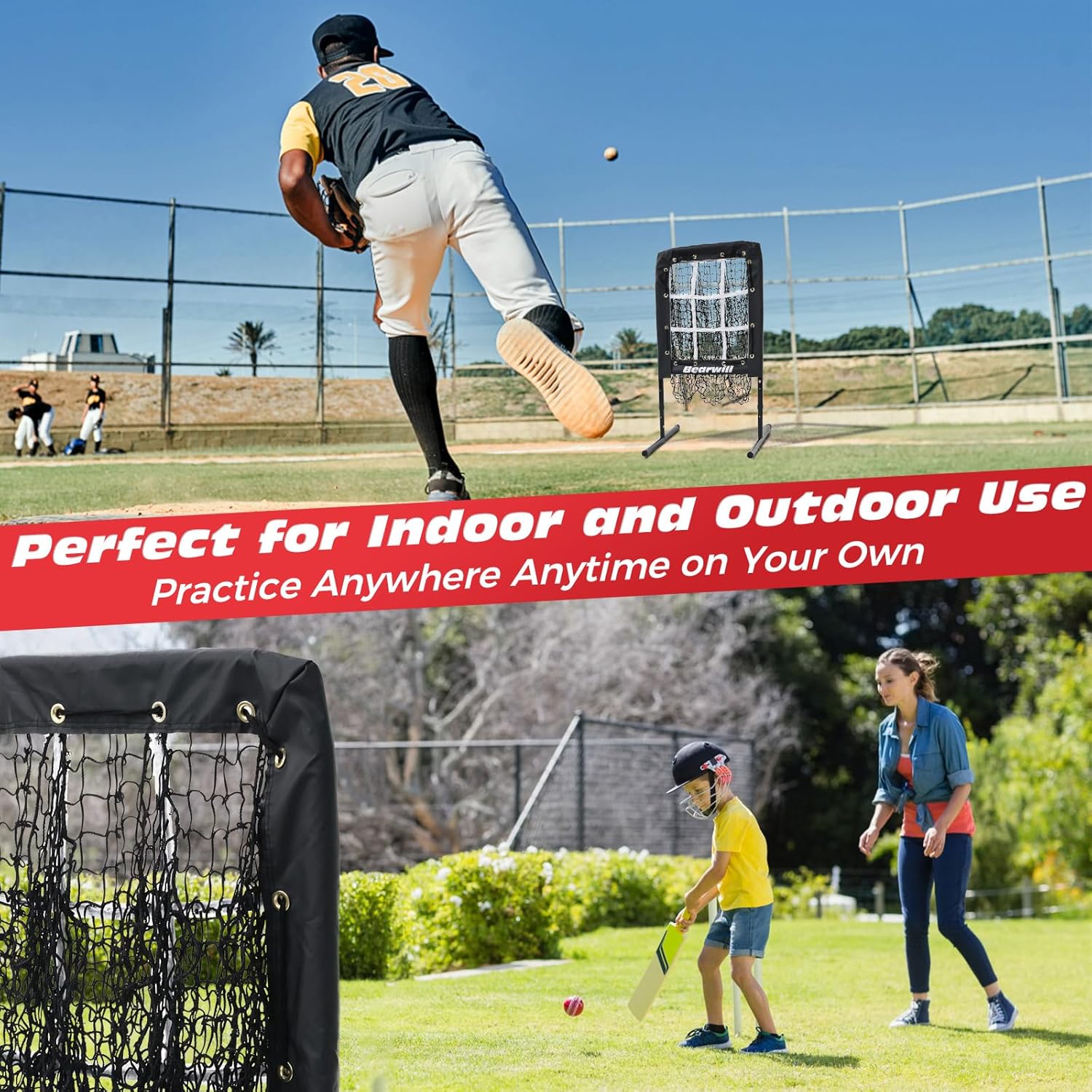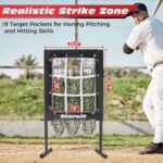 9 Hole Baseball Pitching Net: With a realistic strike zone of 18” x 22” and 9 separated pitching pockets, this pitching net is a great baseball training equipment to enhance pitching and throwing accuracy, helping to build muscle memory of different pitches. Perfect for baseball softball pitcher training of all ages and skill levels, without needing a catcher