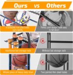 【4-layer Sports Equipment Storage Rack】: The three-layer bracket can store 12 balls in total, perfect for storing basketball, volleyball, football and so on. Top mesh basket is ideal to organize small sports equipment like baseball, gloves or rugby.