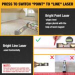 LED Light: Designed with 2 bubble vial LED lights for easier reading in dark workspaces. Long press the red button to turn on/off the light. Class II laser product, output < 1mW