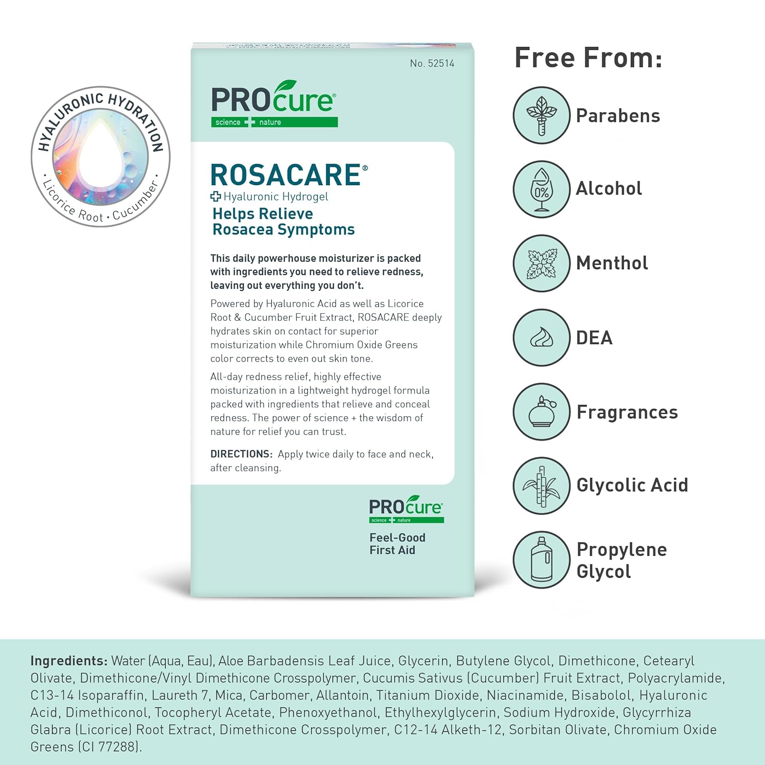 PROcure Rosacare Medicated Redness Reduction CC Face Cream, Hyaluronic Hydrogel for Rosacea Symptoms, 2 Ounce