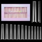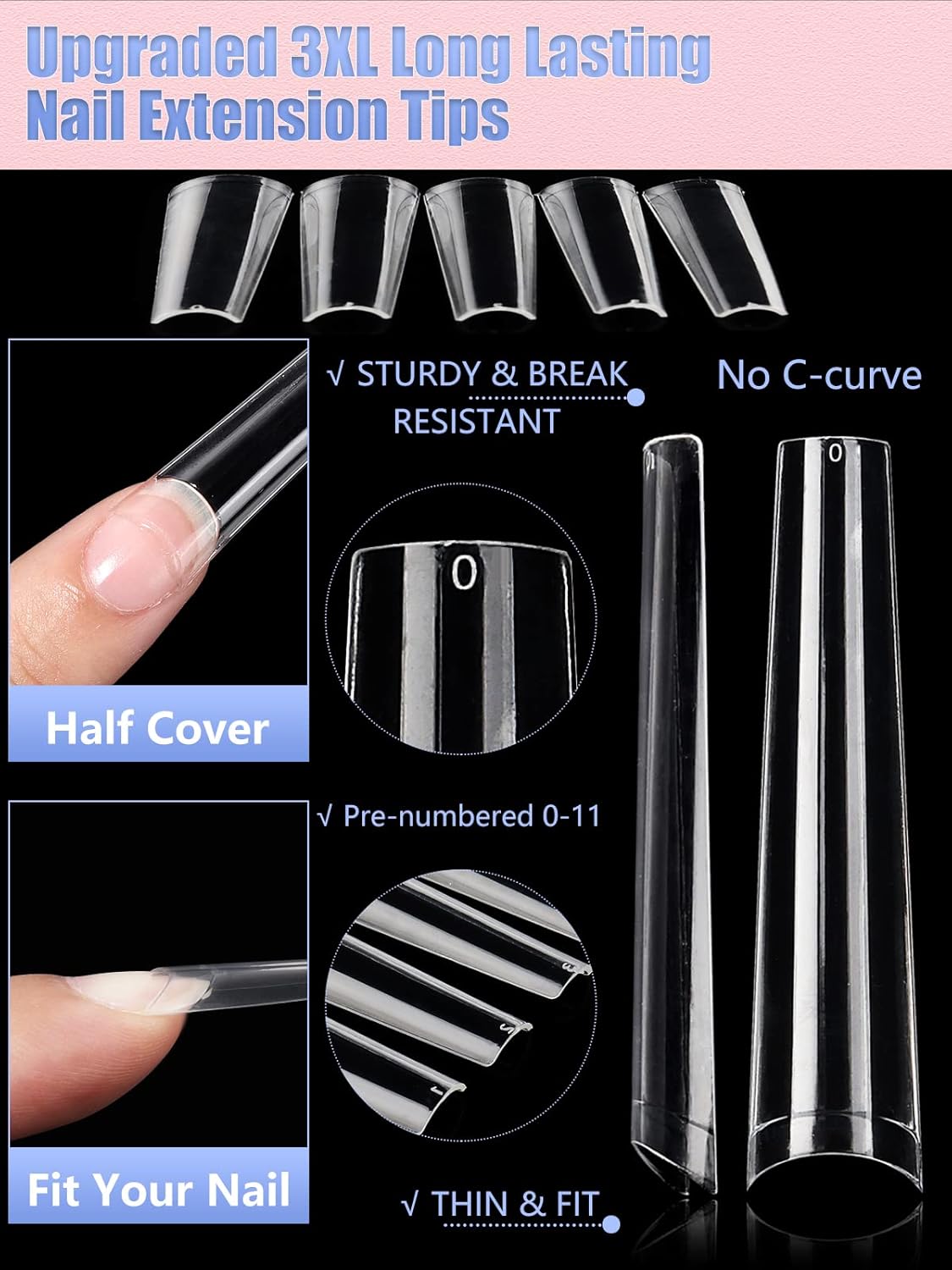 Quaferen 504Pcs Clear Coffin Nail Tips for Acrylic Nails Professional, XXXL Extra Long No C Curve Coffin Straight Acrylic Nail Tips, Half Cover No Crease Nail Extension False Nails for DIY Nail Art