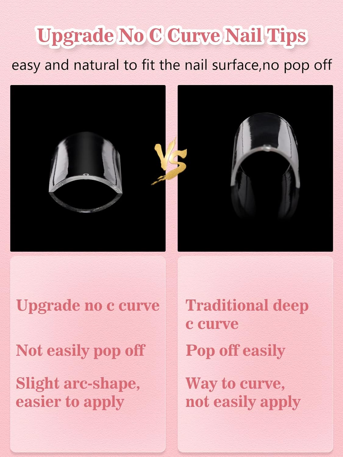 【Flat No C Curve Design】 No c curve 3xl long acrylic nails have been fully upgraded, its curvature is not so deep, the lines are flatter, it is better to fit your nail bed, won’t pop up, this allows you to wear it for a longer period of time, up to 2-3 weeks.