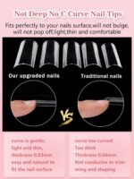【Create A Variety of Shapes】Our no c curve soft gel nail tips are pre-shaped, you can use them directly to extend your nails in salon or home DIY nails Extra-long length can be trimmed to suit your desired shapes, like long coffin nails, long french nails,short coffin ballerina, and so on.
