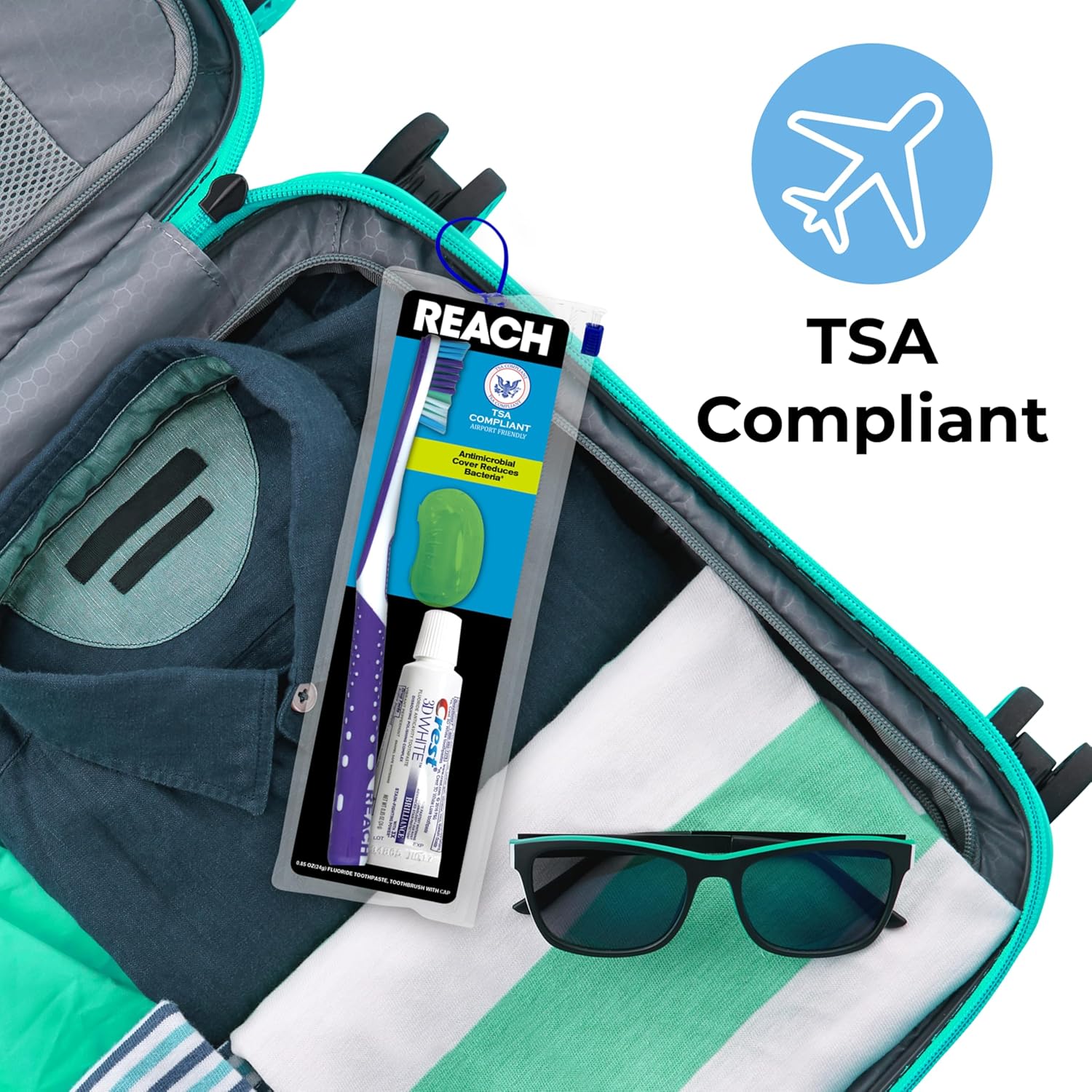 ORAL CARE ON THE GO: TSA compliant and airport friendly, this kit is made for travel, with a REACH toothbrush and Crest toothpaste that make it the perfect addition to any toiletries bag