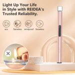 REIDEA Candle Lighter – Long USB Rechargeable Arc Windproof Flameless Lighter with Safety Switch for Home, Kitchen, BBQ, Camping, Stove