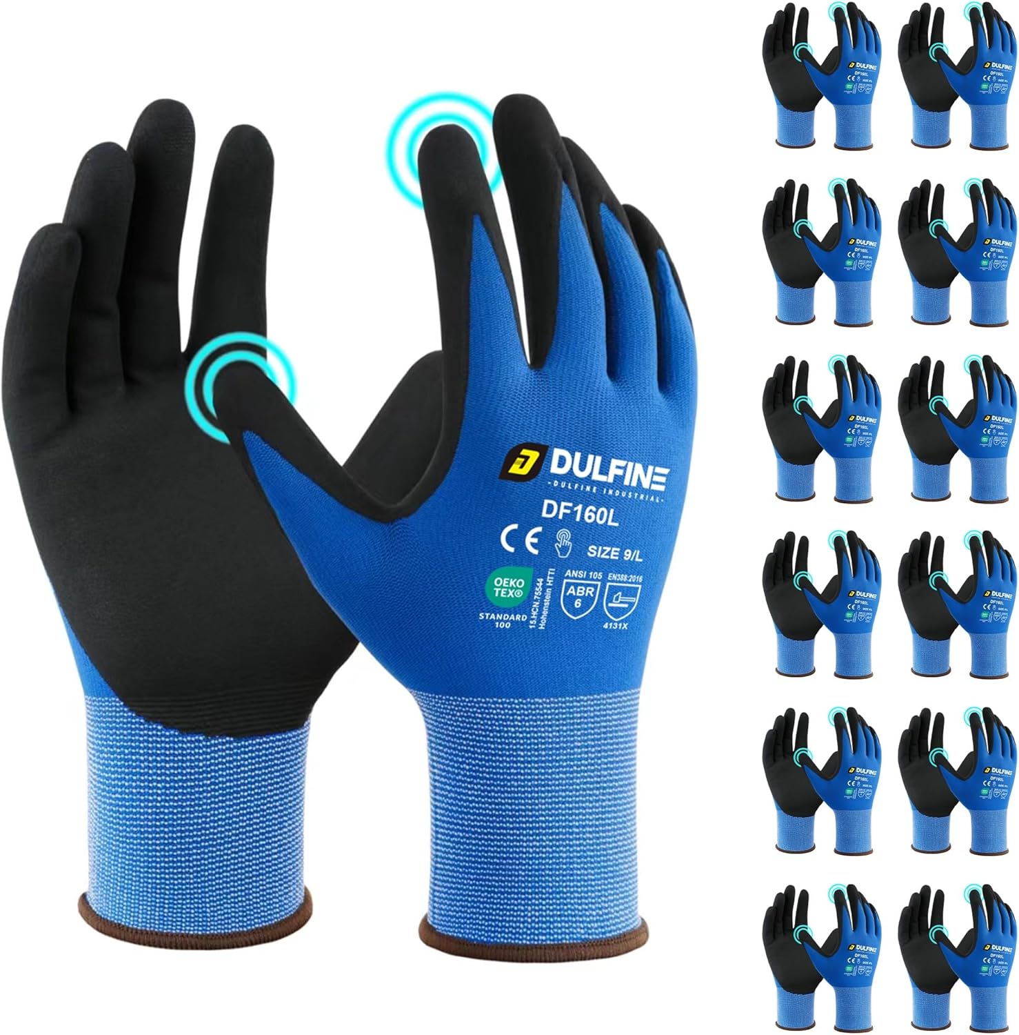 Safety Work Gloves MicroFoam Nitrile Coated-12 Pairs Pack,Blue Seamless Knit Nylon Glove with Black Micro-Foam Nitrile Grip,Ideal for General Purpose,Automotive,Home Improvement,Painting(Large)