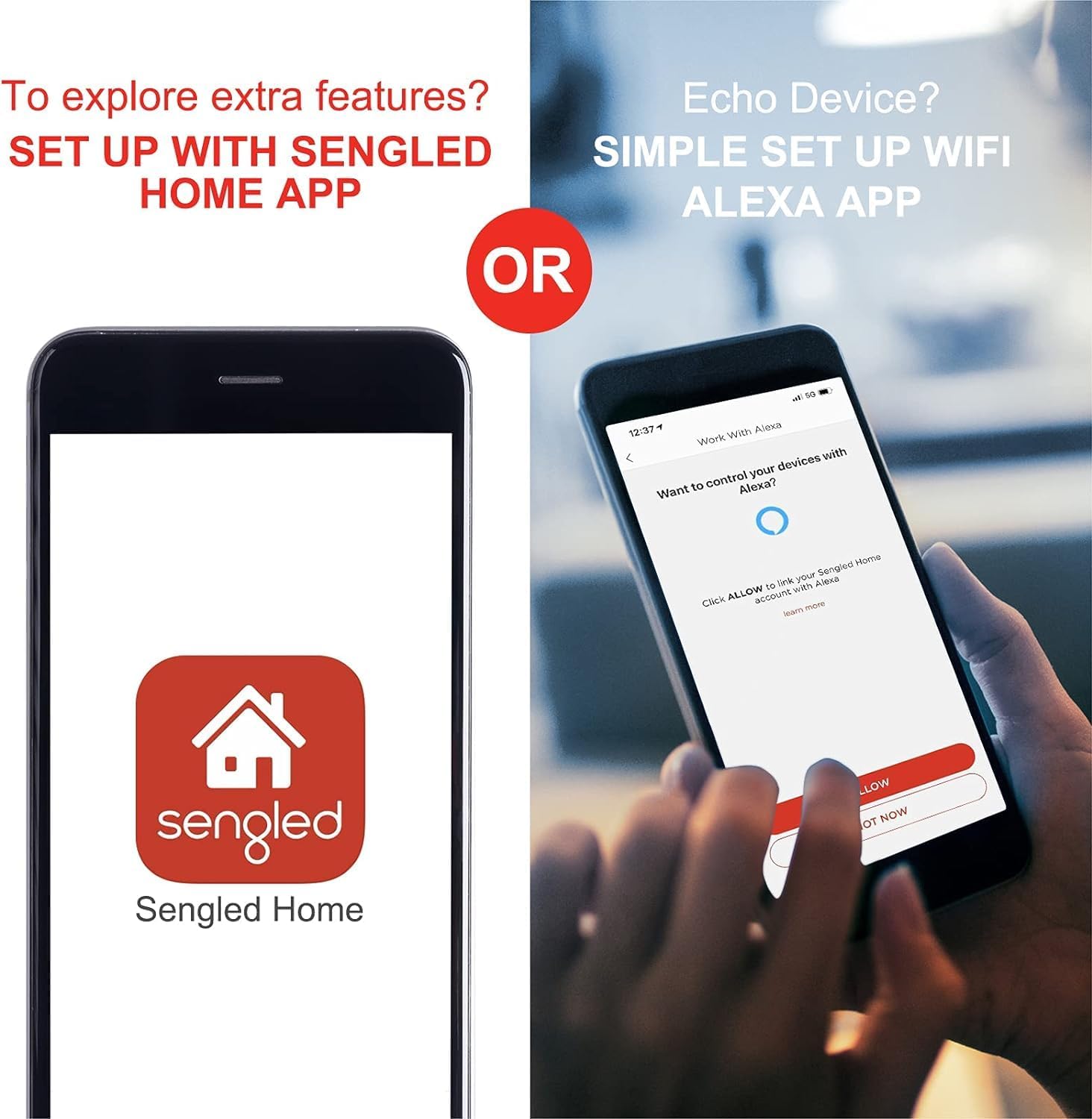 Voice Control: Sengled WiFi Classic smart bulbs that work with Alexa and Google Assistant. Control your smart light bulbs via voice commands to turn your smart bulbs on/off, create suitable mood scenes, adjust brightness and more, e.g. Switch on the alexa light bulb before getting out of bed, dim the smart lights from the couch to watch a movie..Special Features:No Hub Required,Works with Alexa & Google Assistant,App & Remote Control,Voice Command Control,Set Scenes & Schedules