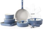 SENSARTE 17 Piece Ceramic Pots and Pans Set, Nonstick Detachable Handle Cookware, Induction Kitchen Cookware Set with Removable Handle, Dishwasher & Oven Safe, PFAS/PTFE/PFOA Free (Navy)