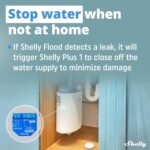 Stop Water when not at home- We’re all planning time away, but we shouldn’t have to leave our homes fully unsupervised. Use Shelly Plus 1 to control your home’s water supply and Shelly Flood to monitor for leaks. Together, they can save your home from disastrous water damage! If Shelly Flood detects a leak, it will trigger Shelly Plus 1 to close off the water supply to minimize damage caused by the leaking pipe or appliance.