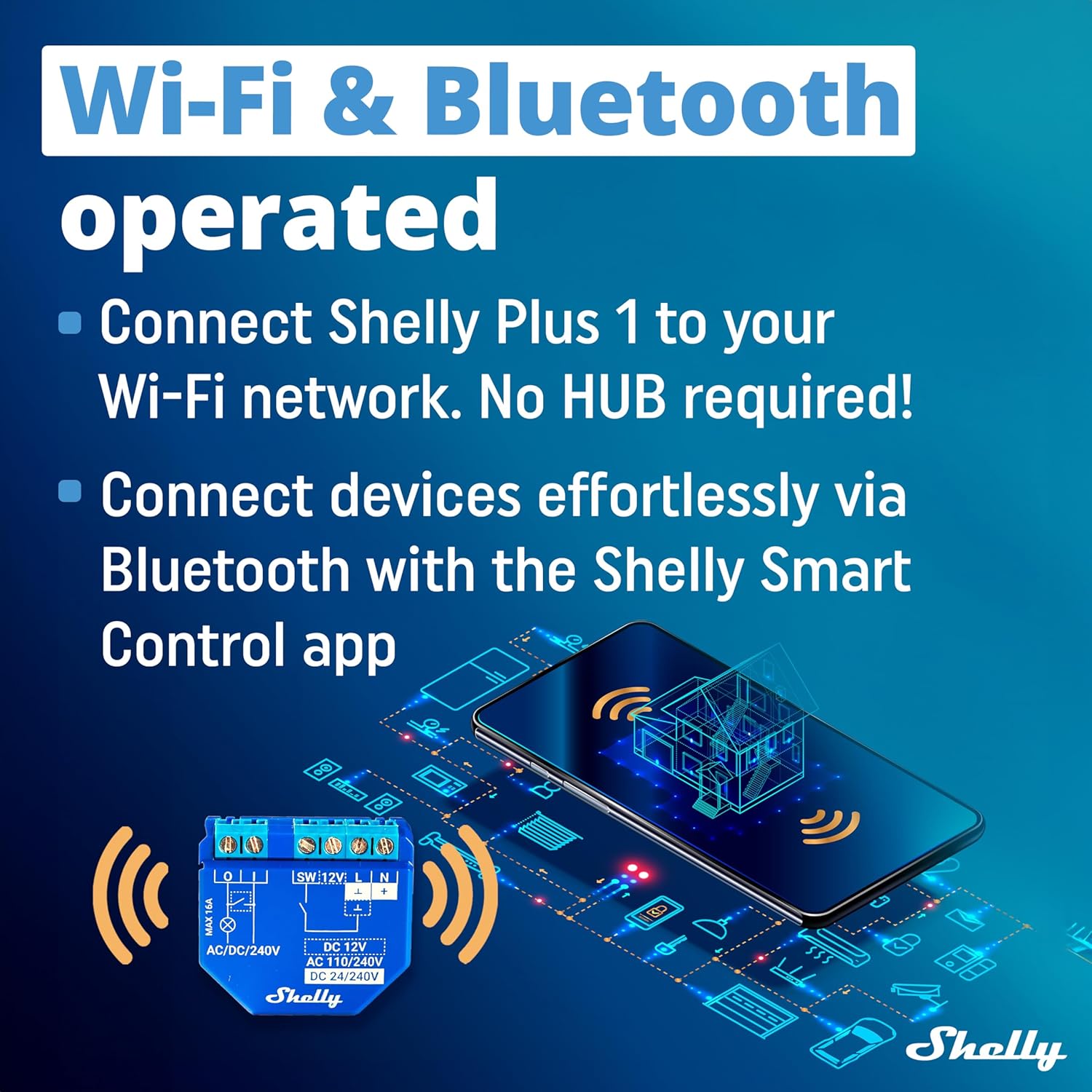 Shelly Plus 1 UL is a UL-certified Wi-Fi operated smart relay switch with 1 channel, up to 15A that can also be used as a WiFi repeater and Bluetooth gateway. The device is equipped with potential-free outputs (dry contacts), providing high flexibility in voltage support and various applications. It can be used to control a wide range of home appliances, electrical circuits, and office equipment individually.