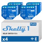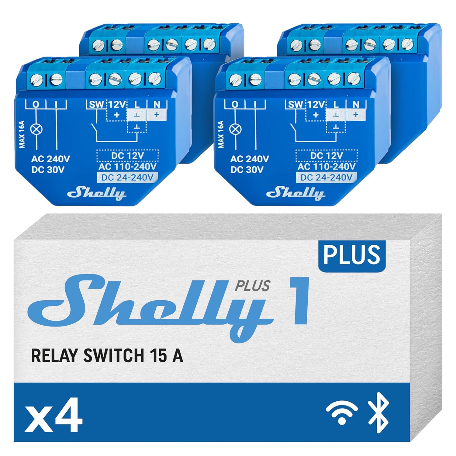 Shelly Plus 1 UL | WiFi Smart Relay Switch with Dry Contacts | Home Automation | Bluetooth Gateway | Alexa, SmartThings & Google Home Compatible | No Hub | Remote Control | Garage Door Opener (4 Pack)