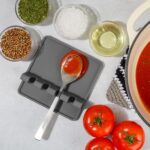 HEAT RESISTANT AND EASY TO CLEAN: Made from food-grade material, this silicone spoon rest can be placed near the stove or countertop without it being affected by heat. It is designed with a non-slip base to prevent it from sliding and causing chaos while cooking. Once you are done with cooking, toss the kitchen tool holder in the dishwasher for a quick cleanup.