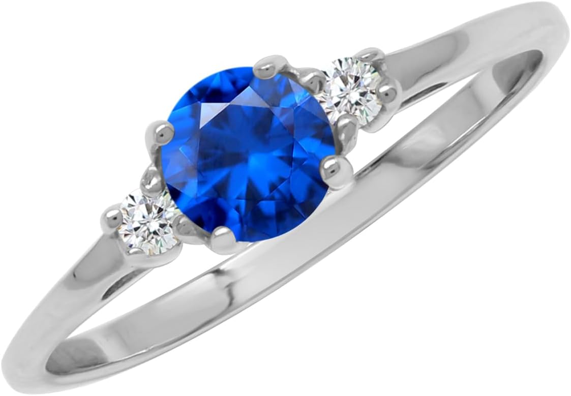 Silvershake Petite Design Round Shape Gemstone Birthstone White Gold Plated or Yellow Gold Plated 925 Sterling Silver Solitaire Promise or Engagement Ring Jewelry for Women