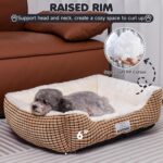 COMFORT AS PRIORITY: Supportive raised sides of the rectangular dog bed create a safe & relaxing environment to make your dog and cat curl up, have fun, provide head and neck have good support. Low leading-edge design is easy access for small and old dogs.
