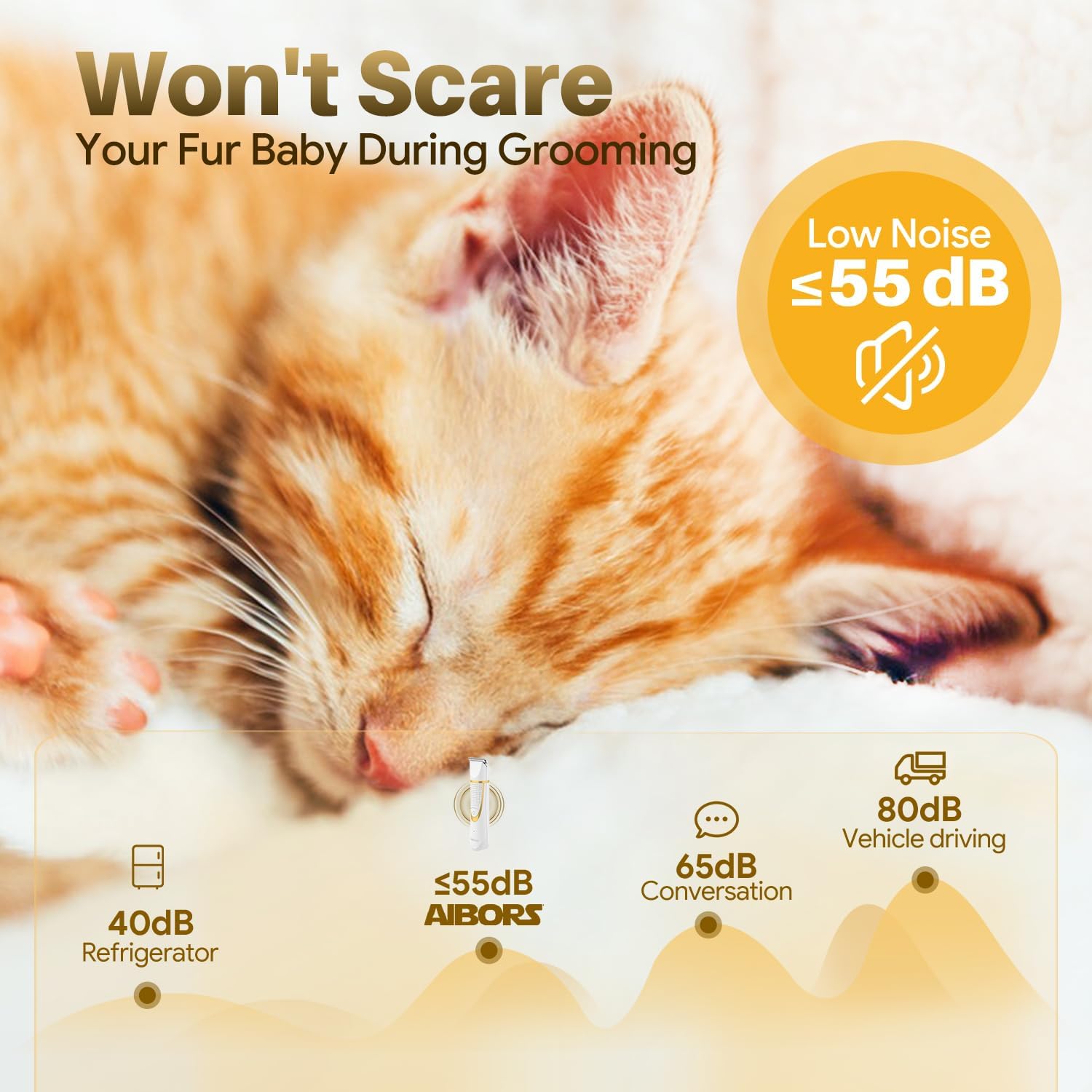 Aibors invested a lot of money and much time to develop some pet clipper products. This electric clipper adopts the most advanced silent technology and low-vibration design, with almost no noise and vibration, making pets feel more relaxed and comfortable during the grooming process.