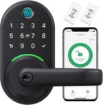 [Quick and Effortless Installation] Say goodbye to complicated installations and time-consuming setups. Our smart lock is designed for hassle-free installation, taking just 10 minutes to fit most standard American wooden front doors. Simply replace the existing handle, knob, or deadbolt using a screwdriver, without the need for any additional drilling. What’s more, the reversible handle ensures compatibility with both left and right-handed doors.