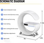 【4 in 1 Multifunctional Wireless Charging Atmosphere Light】: Newly upgraded G-shaped design. The lamp is not only an atmosphere light, Bluetooth speaker, music, sleep light, atmosphere light, bedside light, glare effect, Bluetooth audio, clock, alarm clock and other functions. You can use this great light while working, studying, reading and sleeping.