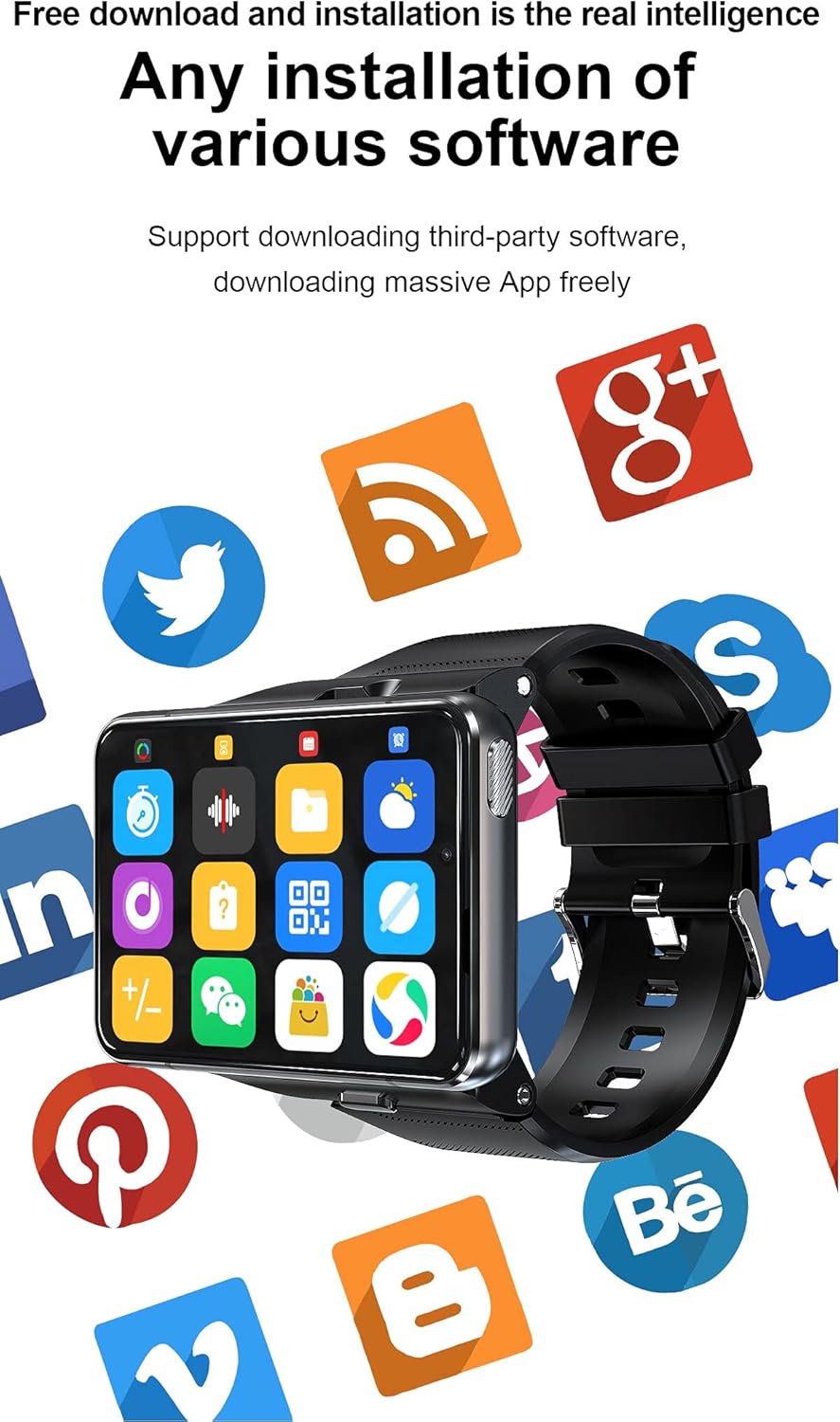 lndependent SIM card: The Smart watch built-in SlM card slot, support full Netcom 4G network and WiFi wireless fast Internetaccess. Support video call, text message, voice call and other functions, high-speed and stable network connection, easily handle important information on your wrist.