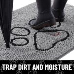 Smiry Dog Door Mat for Muddy Paws, Absorbent Dirt Trapper Non Slip Quick Dry Washable Chenille Mat for Mud Dogs, Entry Rug for Indoor and Outdoor (30×20 Inches, Grey)
