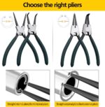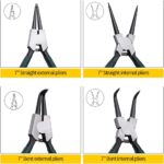 1.Package includes 4pcs different type 7″ internal / external circlip pliers to meet different needs