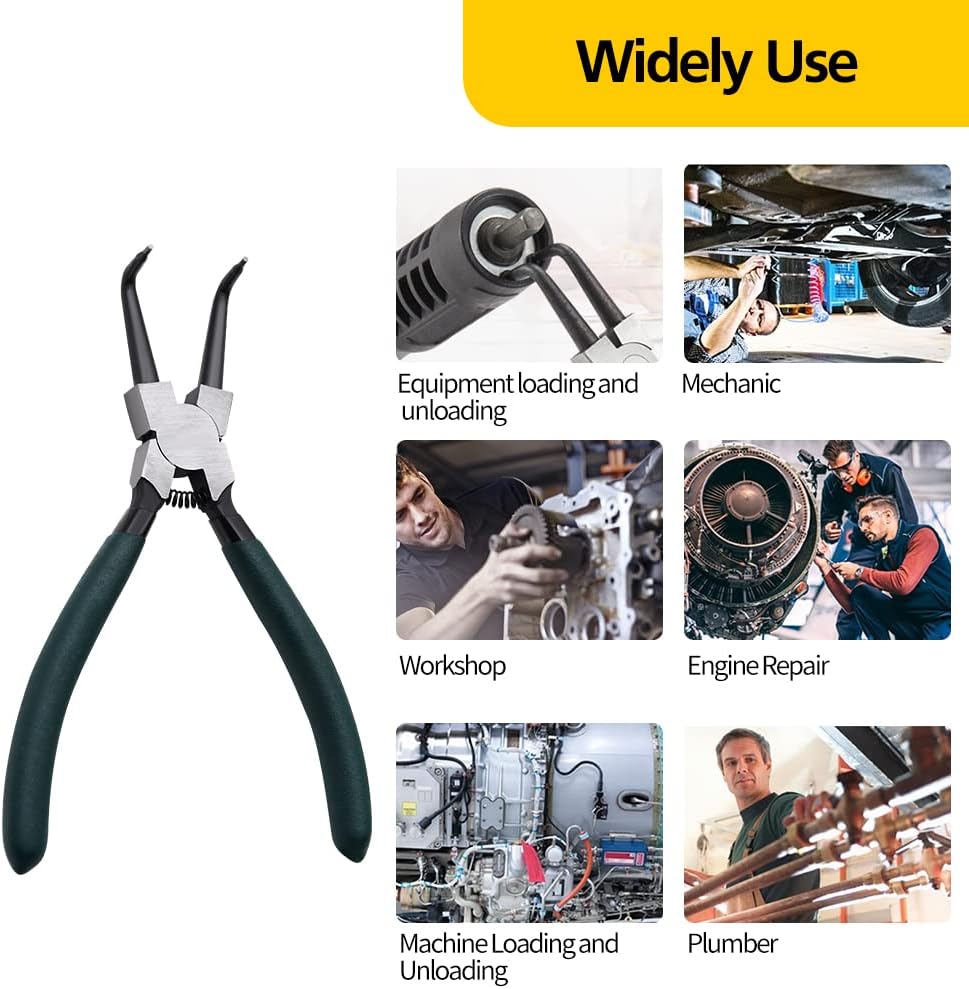 【Best Design】- Our circlip pliers are professionally designed with strong and durable springs, the pliers head and the pliers body are integrally formed, which is not easy to break and have a long service life, the ergonomic non-slip handle can be used for a long time without feeling tired
