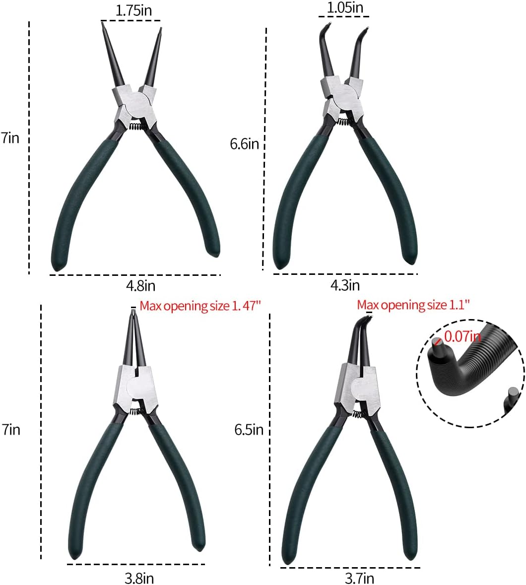 1.Package includes 4pcs different type 7″ internal / external circlip pliers to meet different needs