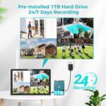 【H.265+ Video Compression & 24/7 Time Record】Compared with H.264, second generation H.265+ is able to double data compression ratio, while improve video quality with low bit-rate, it enables IP camera to deliver smooth HD video with low bandwidth, in turn, reducing the network bandwidth and save up to 50% video storage space. 1T hard drive pre-installed supports 24/7 days loop recording more than 45 days. Please note: the camera kit only supports 2.4G WiFi.