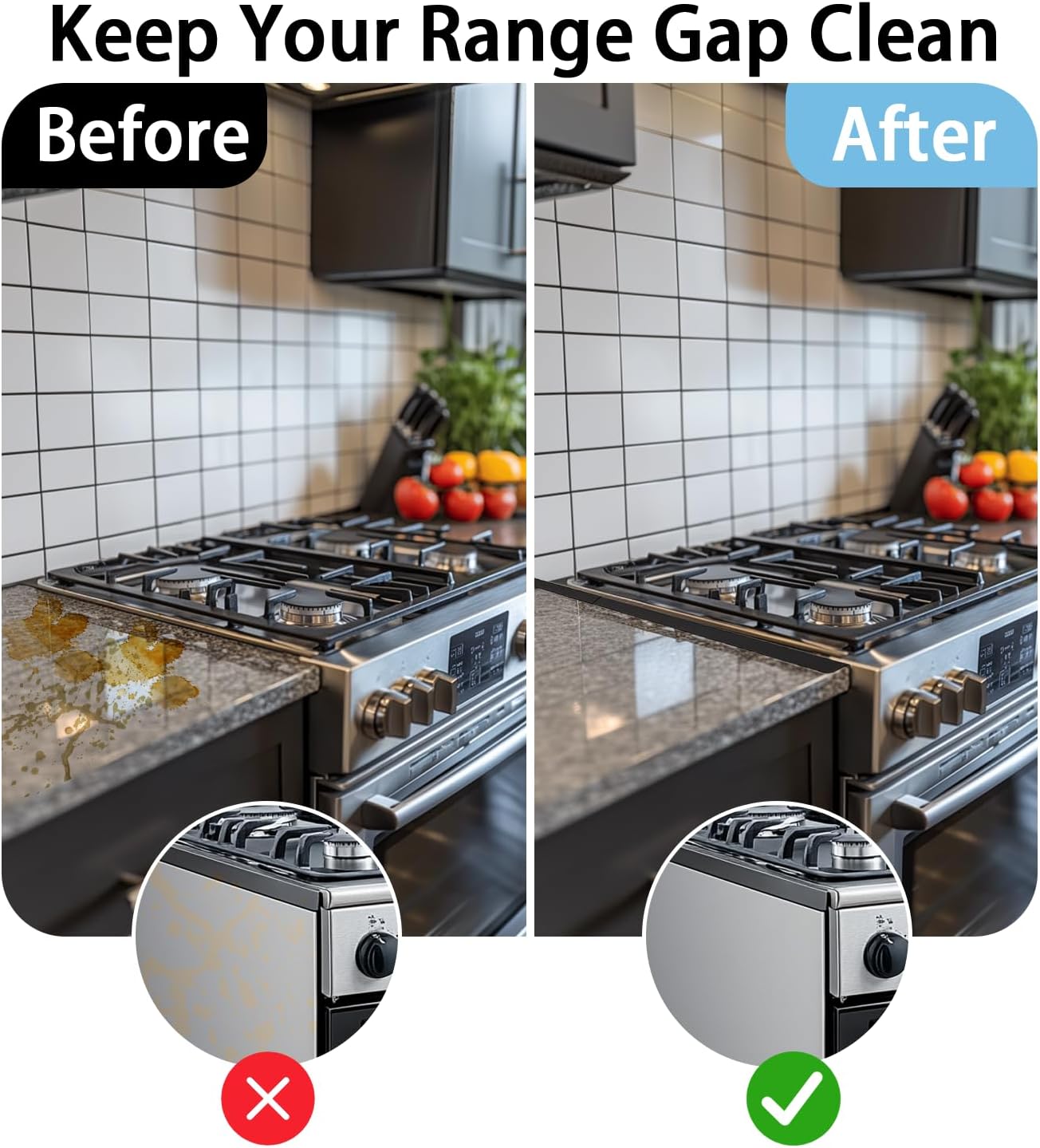 【Stove Counter Gap Cover】Stove side gap covers prevent debris and spills from falling into hard-to-clean crevices. They are easy to remove, clean, dry and replace.