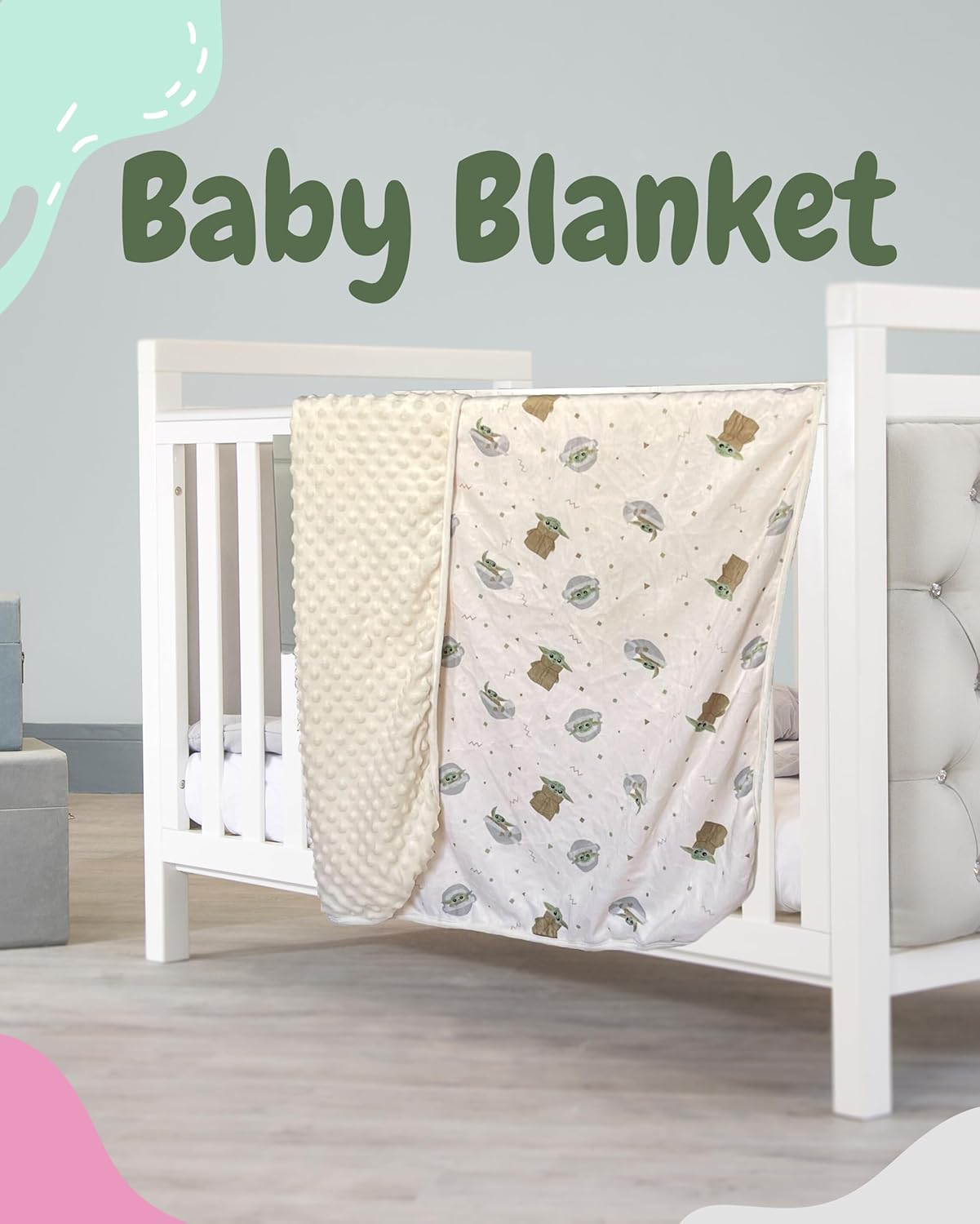 Star Wars Mandalorian Baby Unisex Plush Blanket – Baby Yoda Baby Gifts – Soft Baby Blankets (Off-White/Green, 0-12 Months)