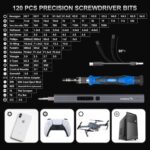 【144 in 1 Electric Screwdriver Kit】STREBITO precision screwdriver set includes: 1 small electric screwdriver to make your repair work easier and more efficient; 1 manual precision screwdriver for projects that require more torque; 120 precision bits for most electronics; 22 repair tools for various disassembly and maintenance tasks. This screwdriver set electric is a must-have for IT technicians, PC builders, and professional fixers