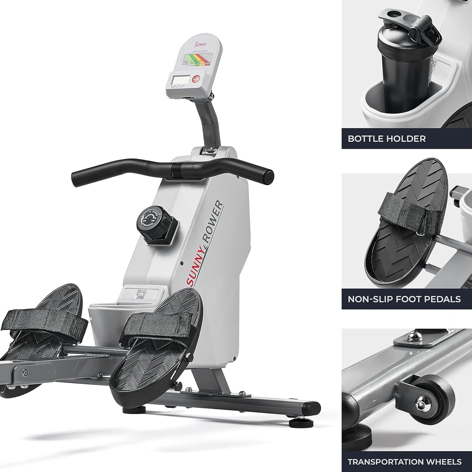 Sunny Health & Fitness Magnetic Rowing Machine for Home Exercise, Quiet & Smooth Rower with Compact Storage and Optional Free SunnyFit App Connectivity