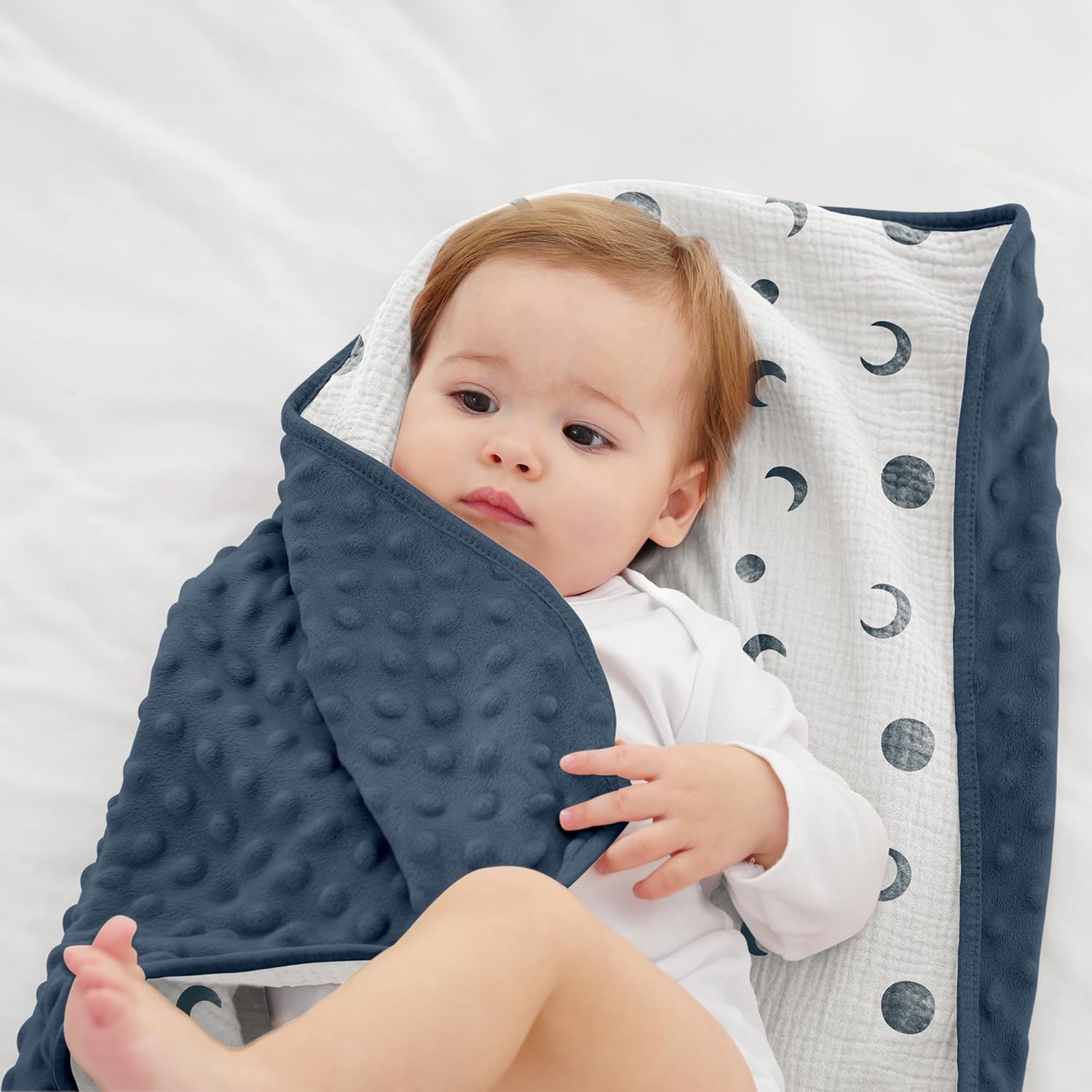 Susurration Baby Blanket for Unisex Boys Girls, Soft Fluffy Crib Blankets with Muslin Cotton Front and Dotted Fleece Back, Receiving Blanket for Baby Newborn Infant, 30x40inch (Bluemoon)