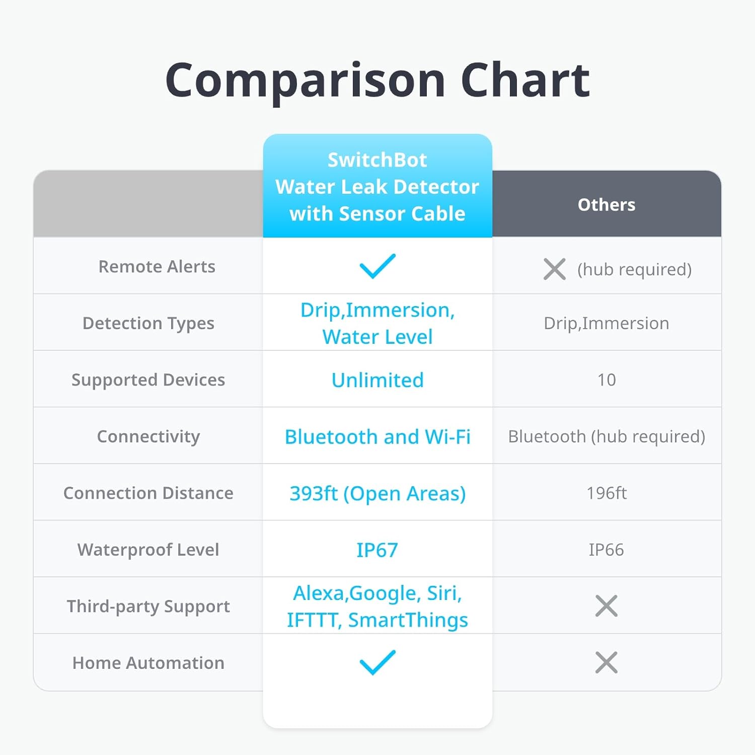 Part of SwitchBot Ecosystem, Voice Command Compatible: Use with SwitchBot Plug Mini or Indoor Cam, and remotely turn off electrical equipment or check the condition of your house in case of leakage. It can also support third-party services such as Google, Siri, IFTTT, SmartThings.