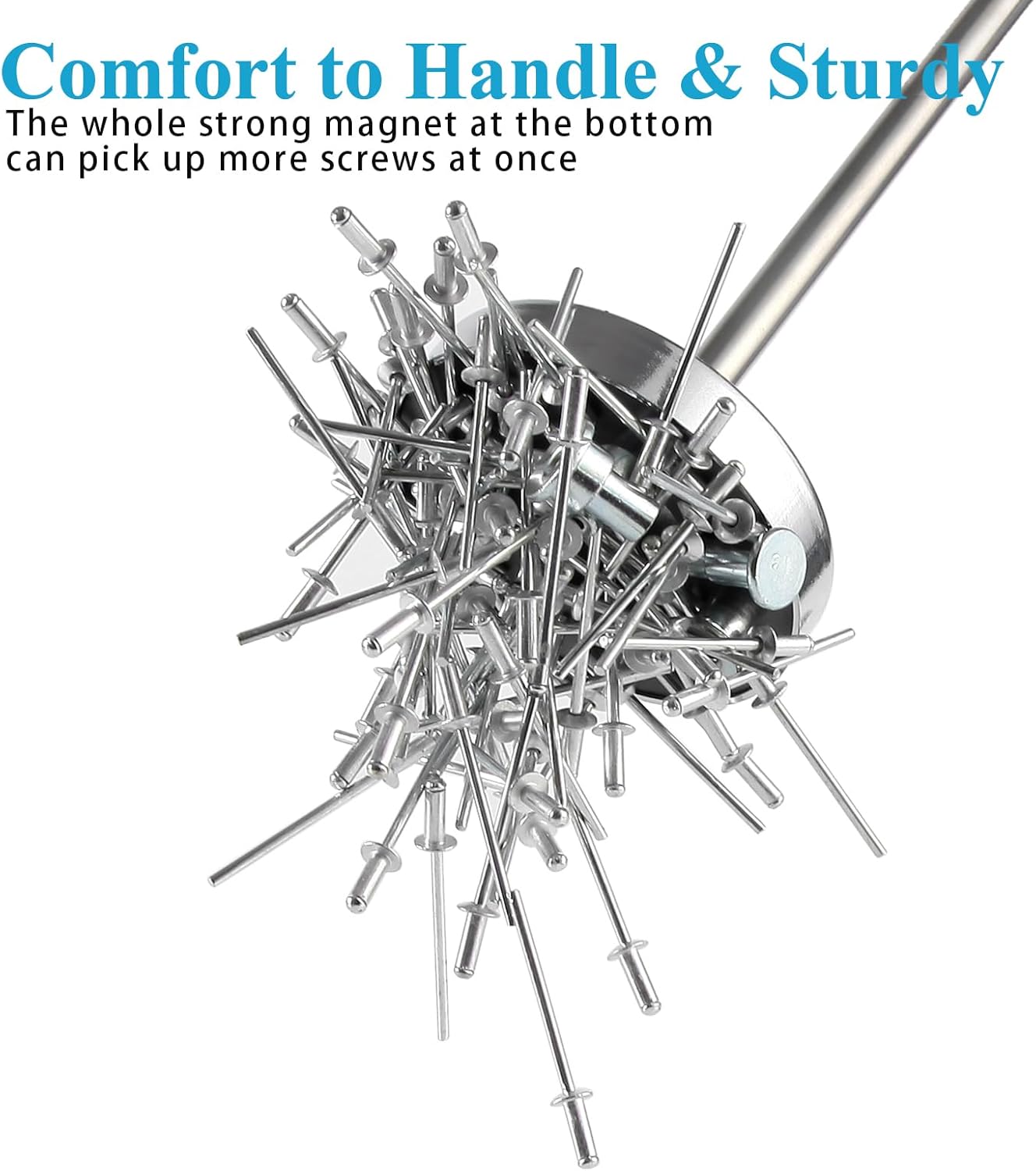 EASY TO ORPERATE WITH STRONG MAGENET: The whole strong magnet for 35LB pull capacity under our real test can easily pick up nails, screws, and ferrous metal scraps. Long extend handle to 34″ can help you reach floor or lawn. The ergonomic easy grip handle designed to fit people’s hand makes the sweeping work comfort.