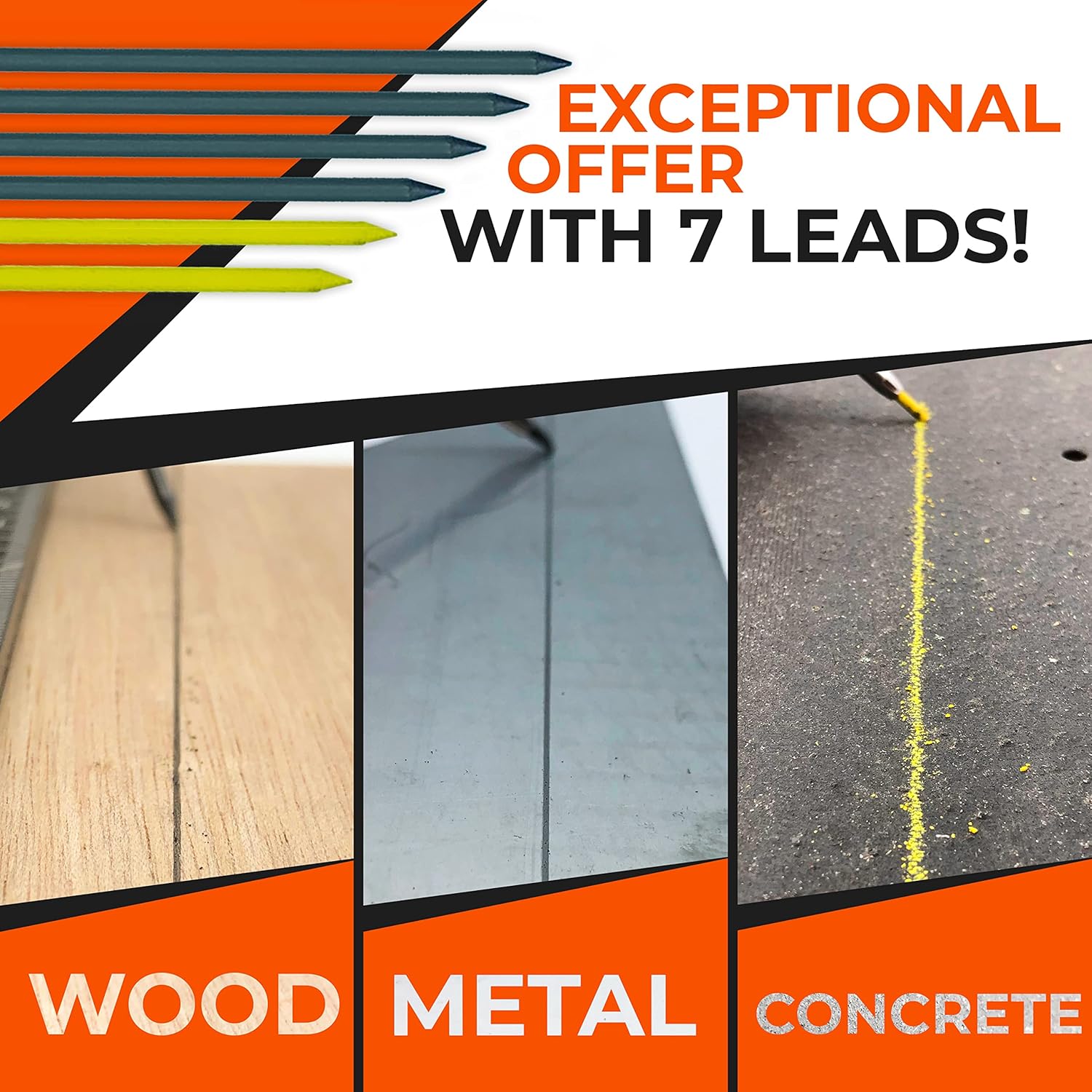 ✅WRITE ON WOOD, METAL BUT ALSO CONCRETE AND TILES: Are you having a hard time tracing on concrete and metal? Writing on a dark surface is no longer a problem thanks to the yellow leads provided with the construction pen! What’s more, the included leads are perfect for tracing anywhere and stronger than dry leads. This makes it the ideal construction pencil for carpenters, masons, and the like, as well as for all other trades!