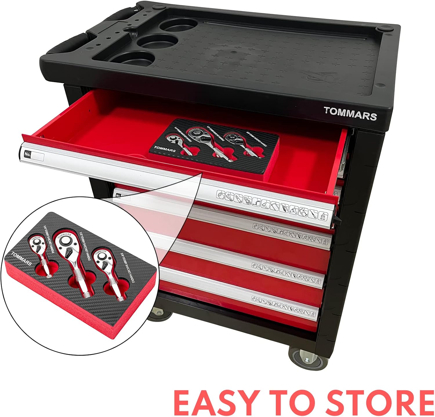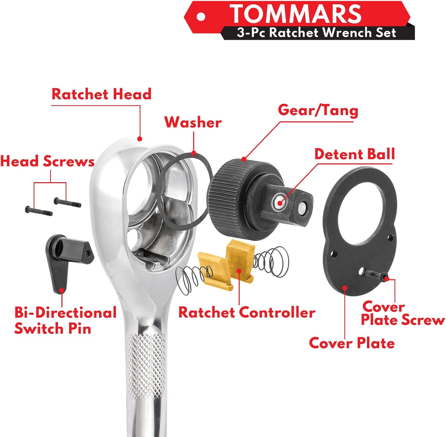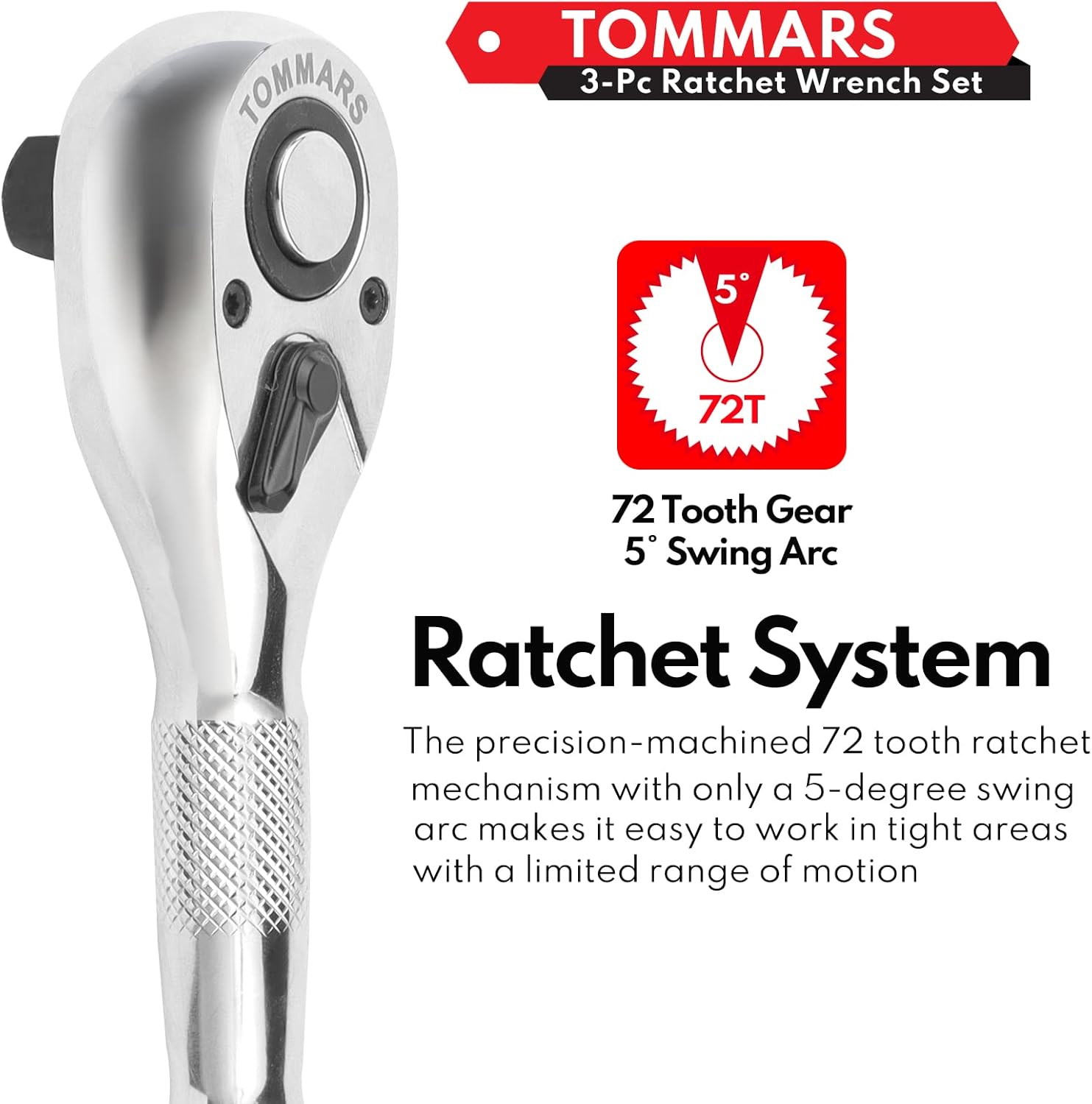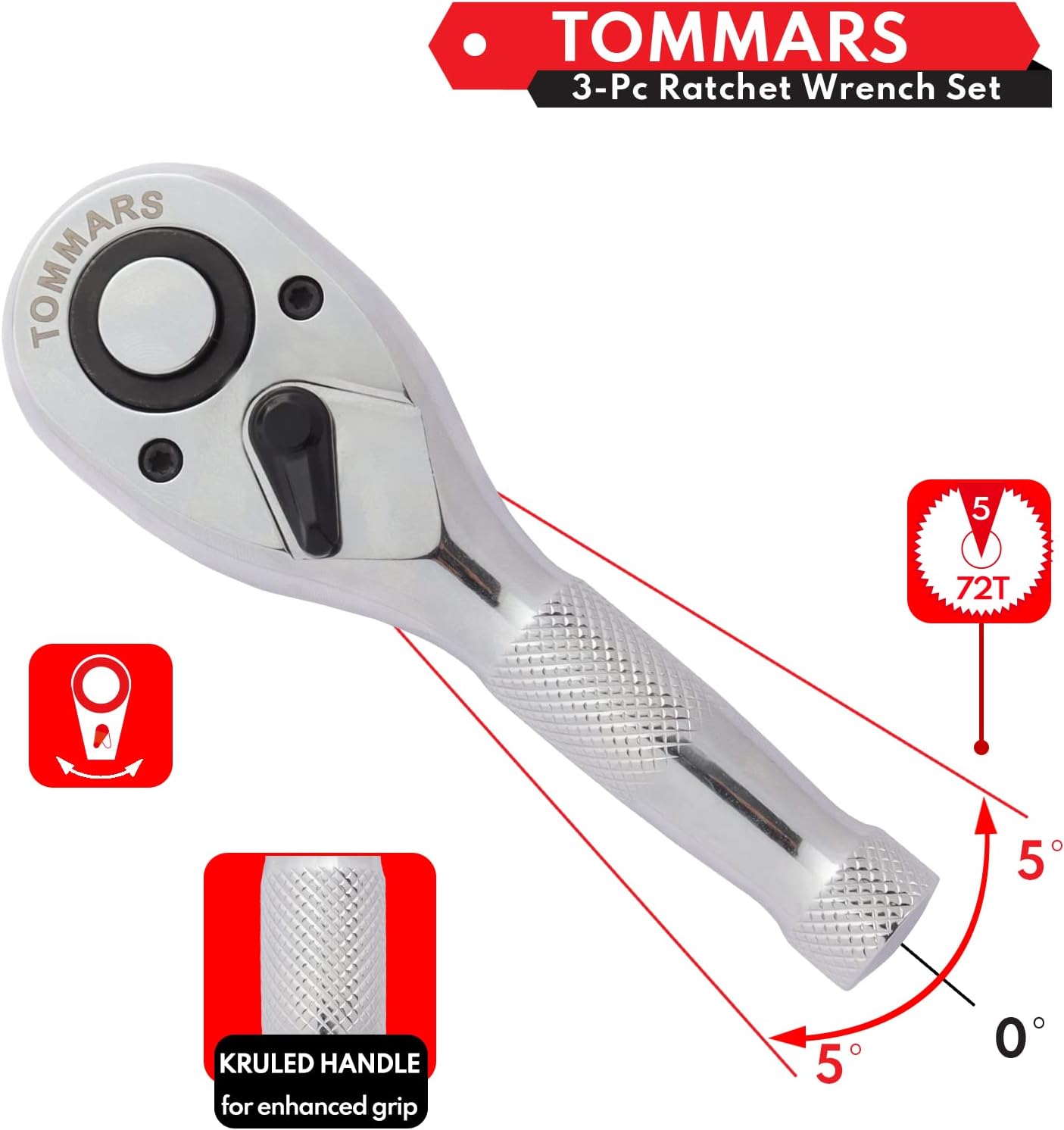 TOMMARS Stubby Ratchet Set, 1/4″, 3/8″, 1/2″ Drive Ratchet Handle Wrench 72-Tooth Quick-Release Reversible