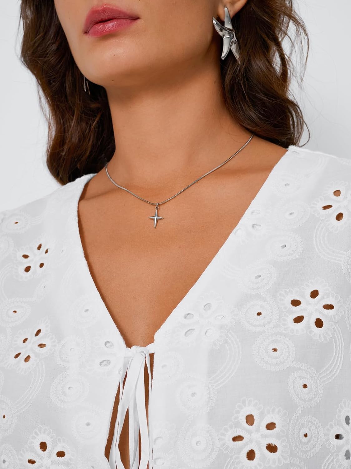 Be the first to review “Trendy Queen Womens Tie Front Tops Summer Beach Vacation 2025 Fashion Outfits Short Sleeve Blouses Eyelet Embroidered Clothes” Cancel reply